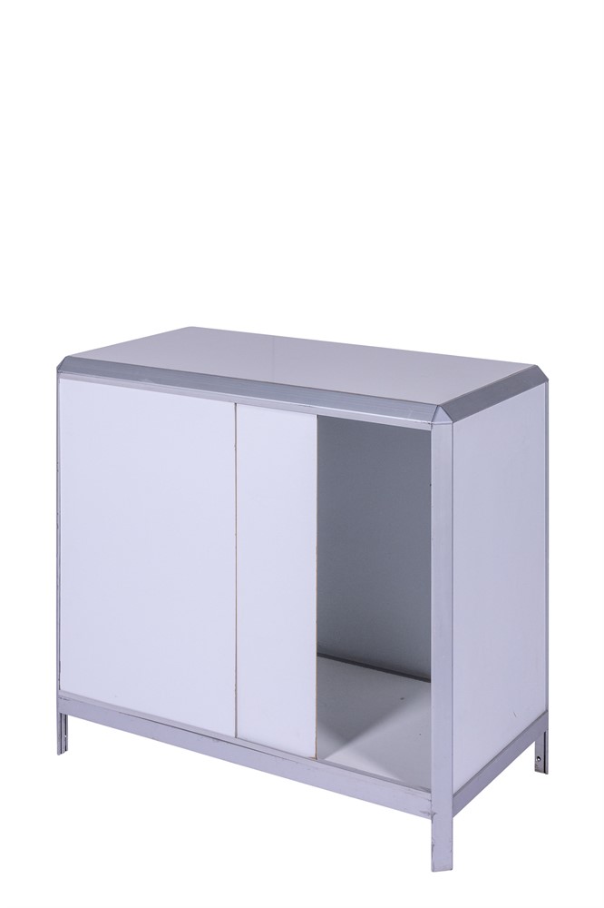 Profildisk i vitt med aluminiumlister, 103x53x90cm (LxBxH)