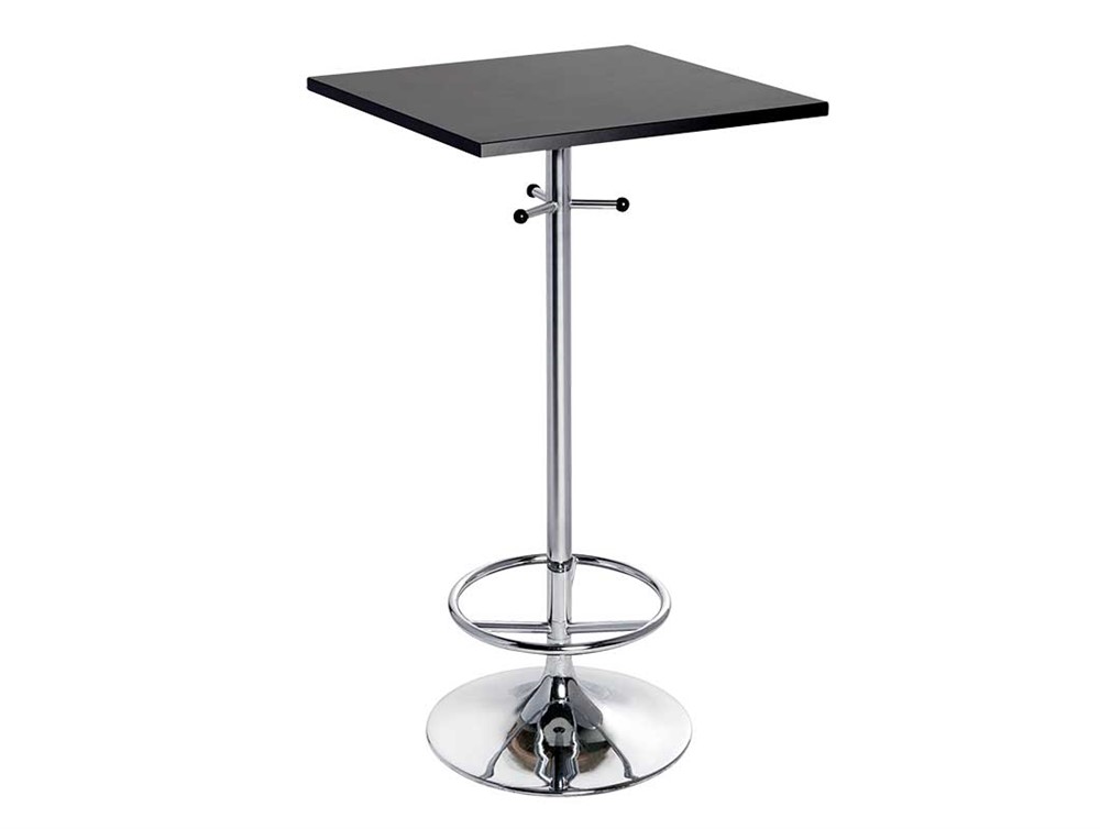 Ståbord, 60x60cm. 110 cm högt, svart med kromat underrede