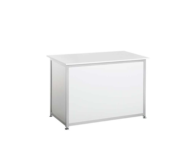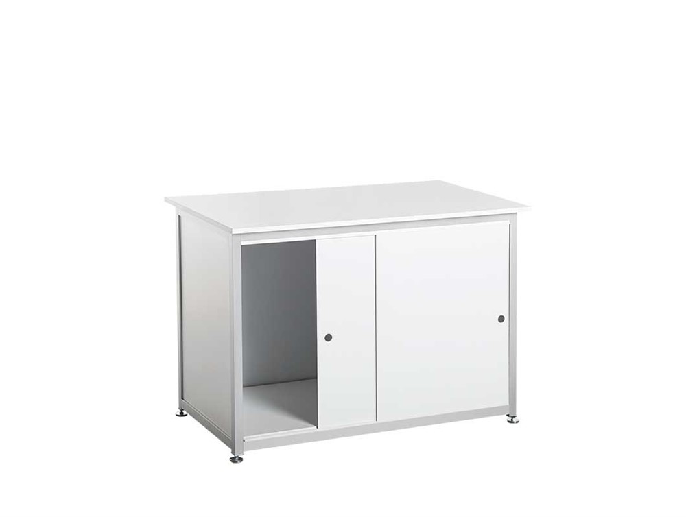 Disk, 1000x500x700mm, vit. Baksida med hyllplan och skjutdörrar, ej låsbara.