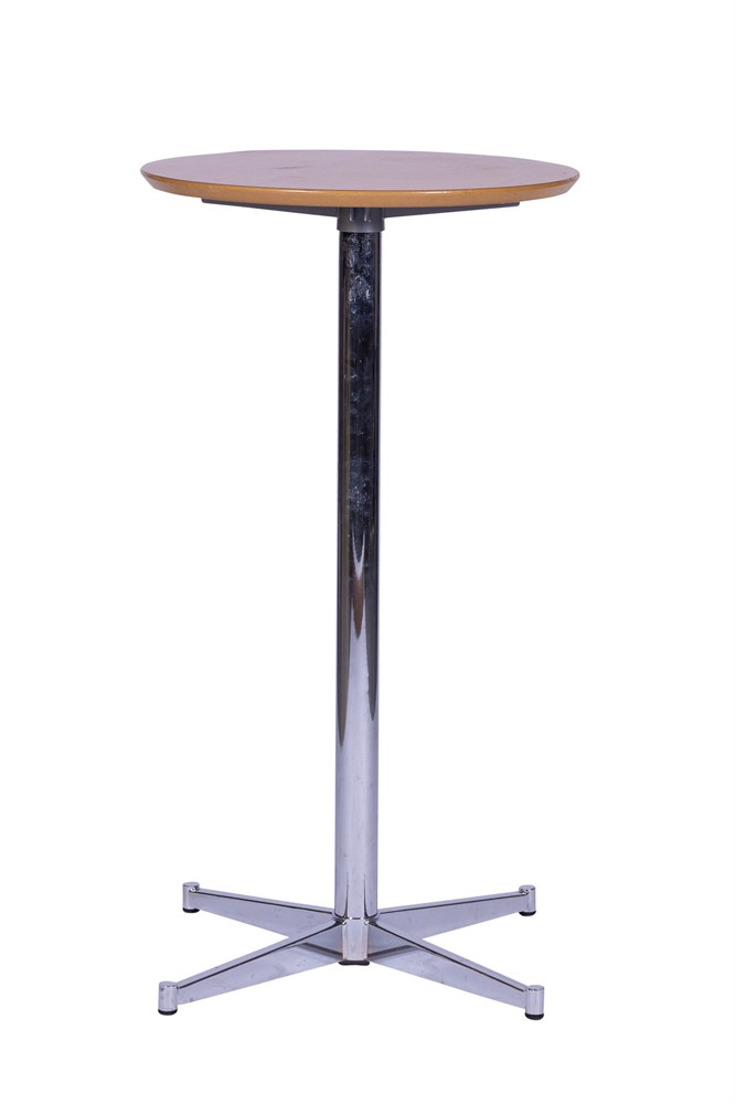 Barbord med skiva i bok och kromat underrede, 60x105cm (ØxH)
