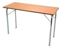 Konferensbord med skiva i bok och kromat underrede, 120x50x74cm (LxBxH)
