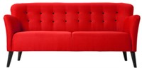 3-sitsig röd tygsoffa med svarta ben, 186x45x85cm (BxSHxH)