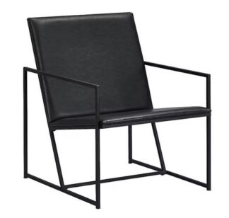 Fåtölj i svart läder med svarta underrede, 62x41x79cm (BxSHxH)