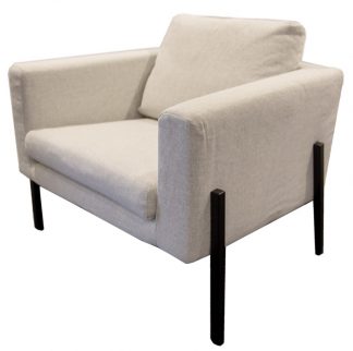 Fåtölj i vitt tyg med svart underrede, 83x44x78cm (BxSHxL)