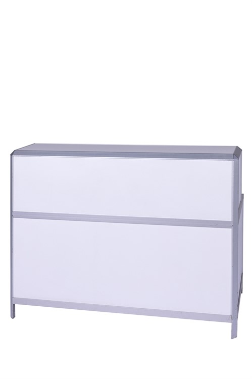 Profildisk i vitt med aluminiumlister, 150x64x105cm (LxBxH)